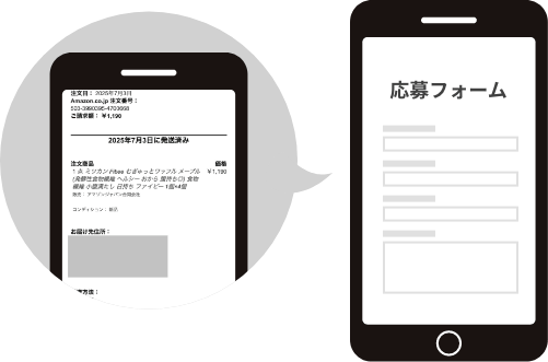 ※オンライン購入の場合は、購入完了画面(ご注文番号・購入日時・商品名・金額が確認できるもの)をスクリーンショットしてください。