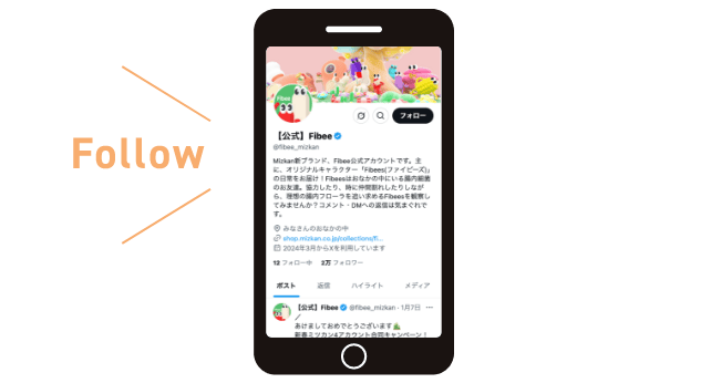 ②指定ハッシュタグをつけ、XでFibeeについての感想を投稿。